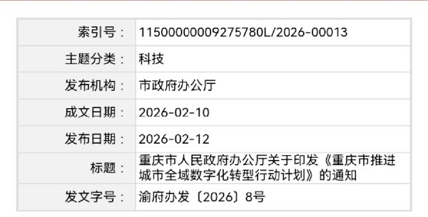 重庆市人民政府办公厅关于印发《重庆市推进城市全域数字化转型行...