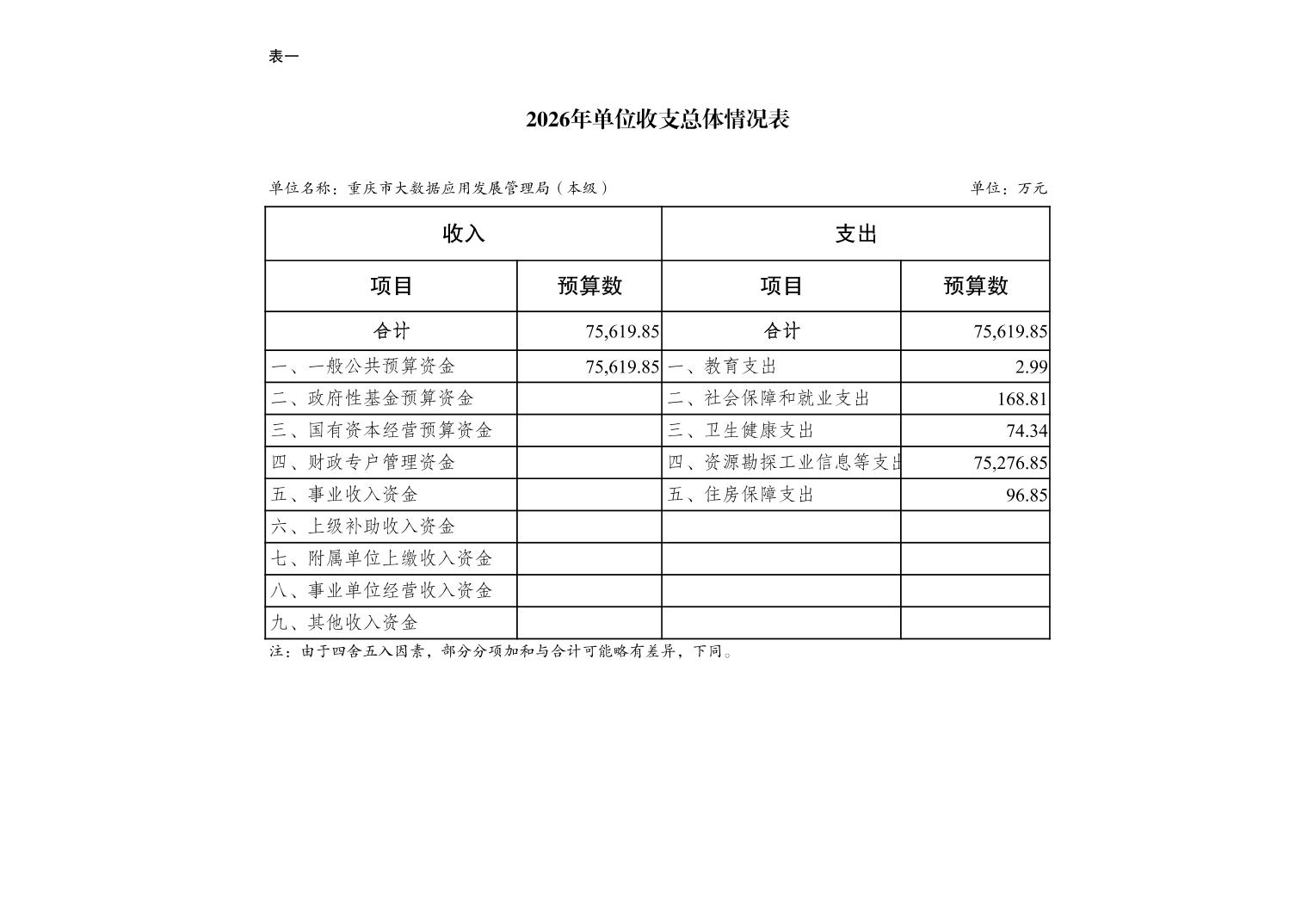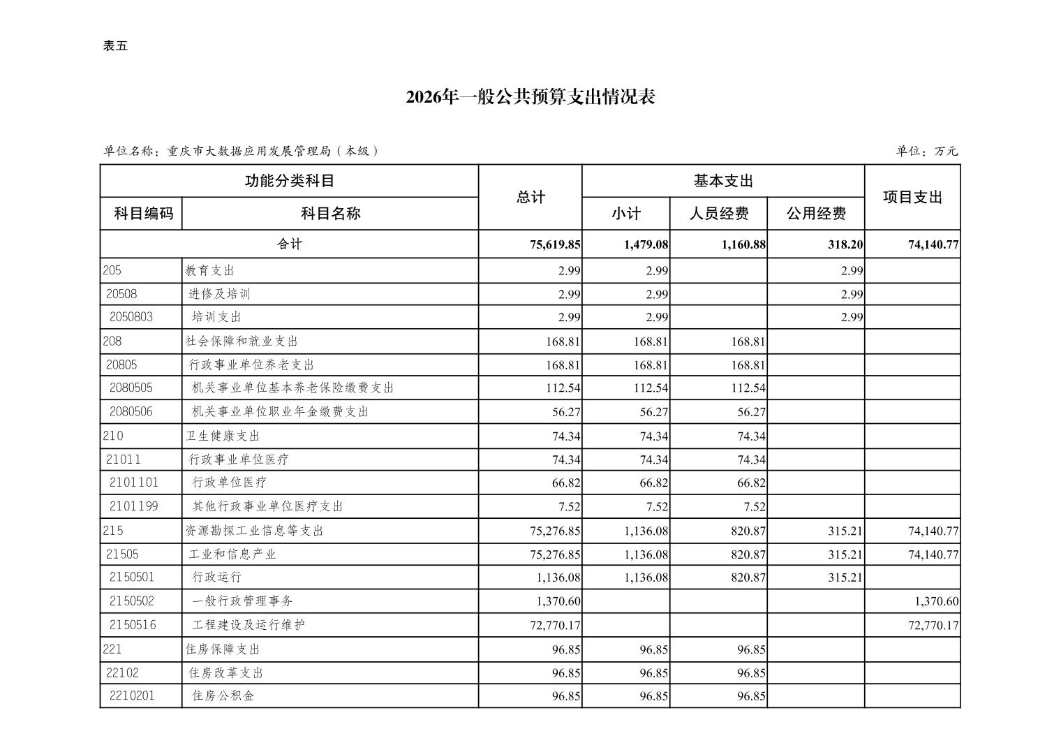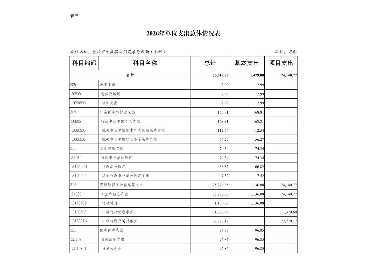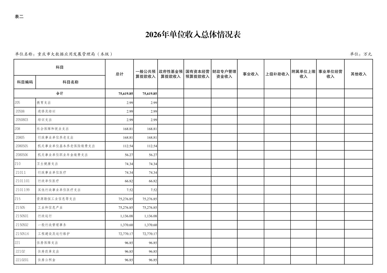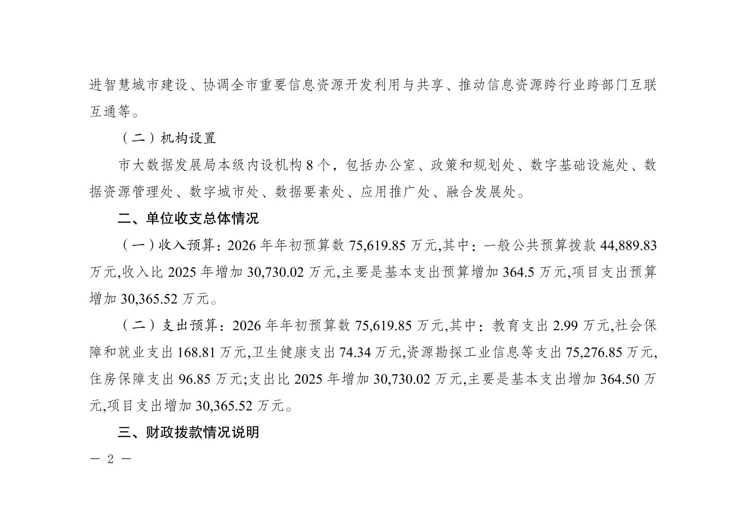 重庆市大数据应用发展管理局2026年单位预算情况说明