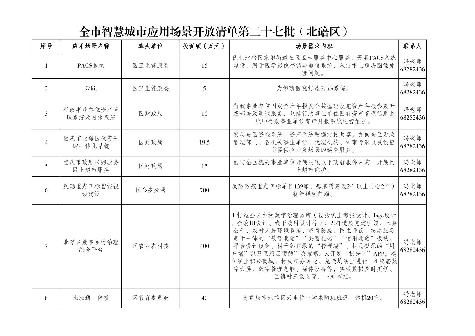全市智慧城市应用场景开放清单第二十七批(北碚区)