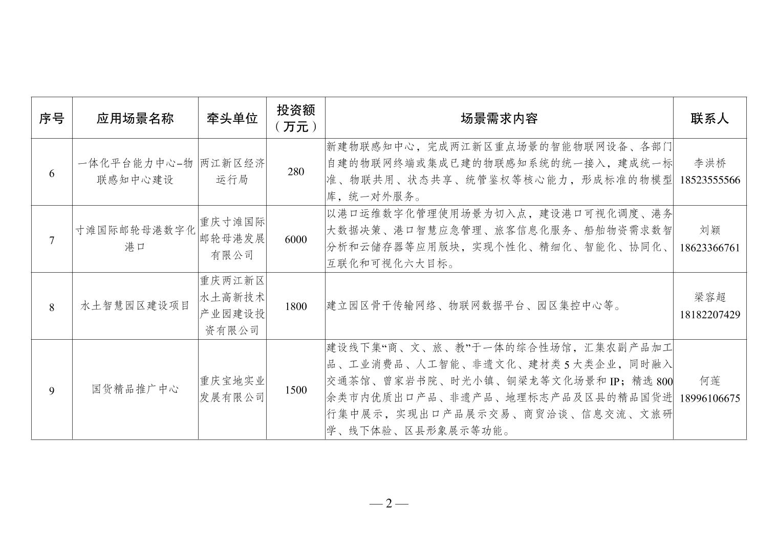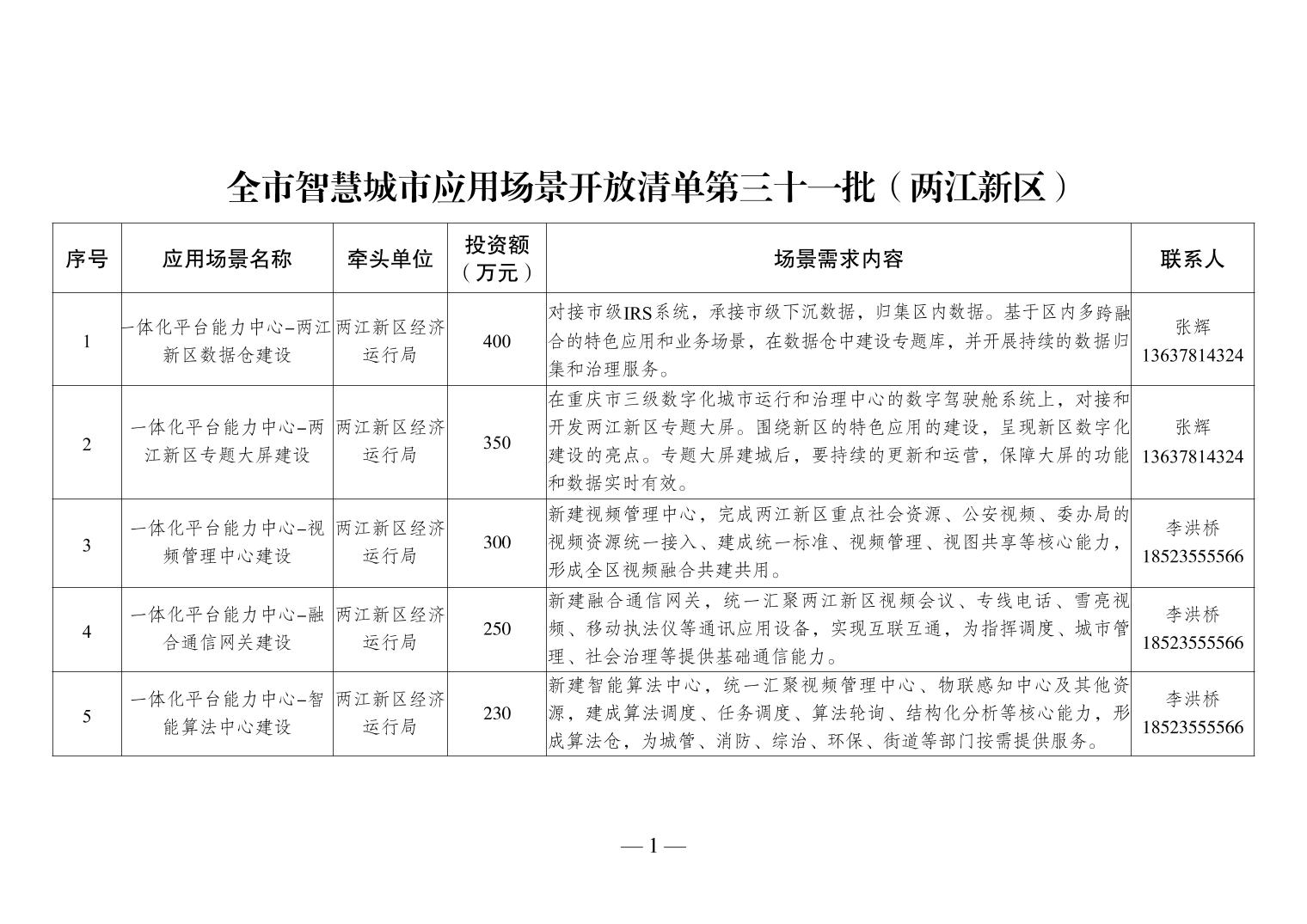 全市智慧城市应用场景开放清单第三十一批(两江新区)