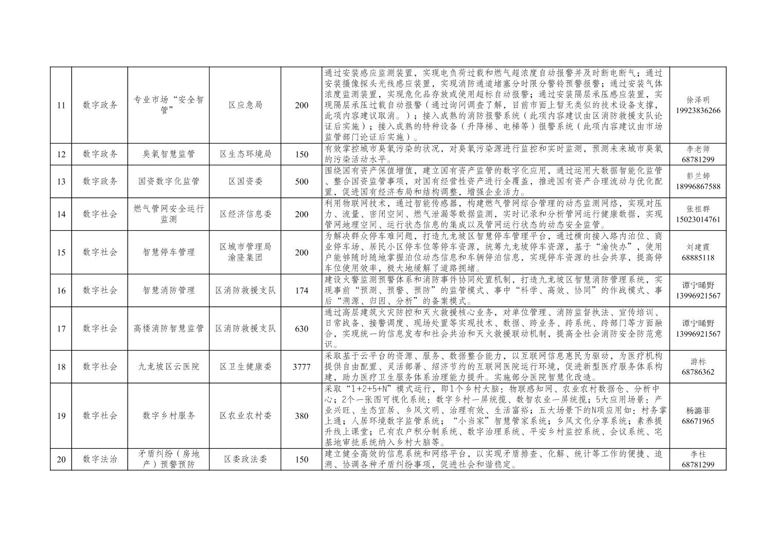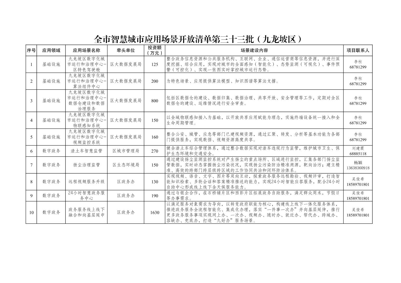 全市智慧城市应用场景开放清单第三十三批(九龙坡区)