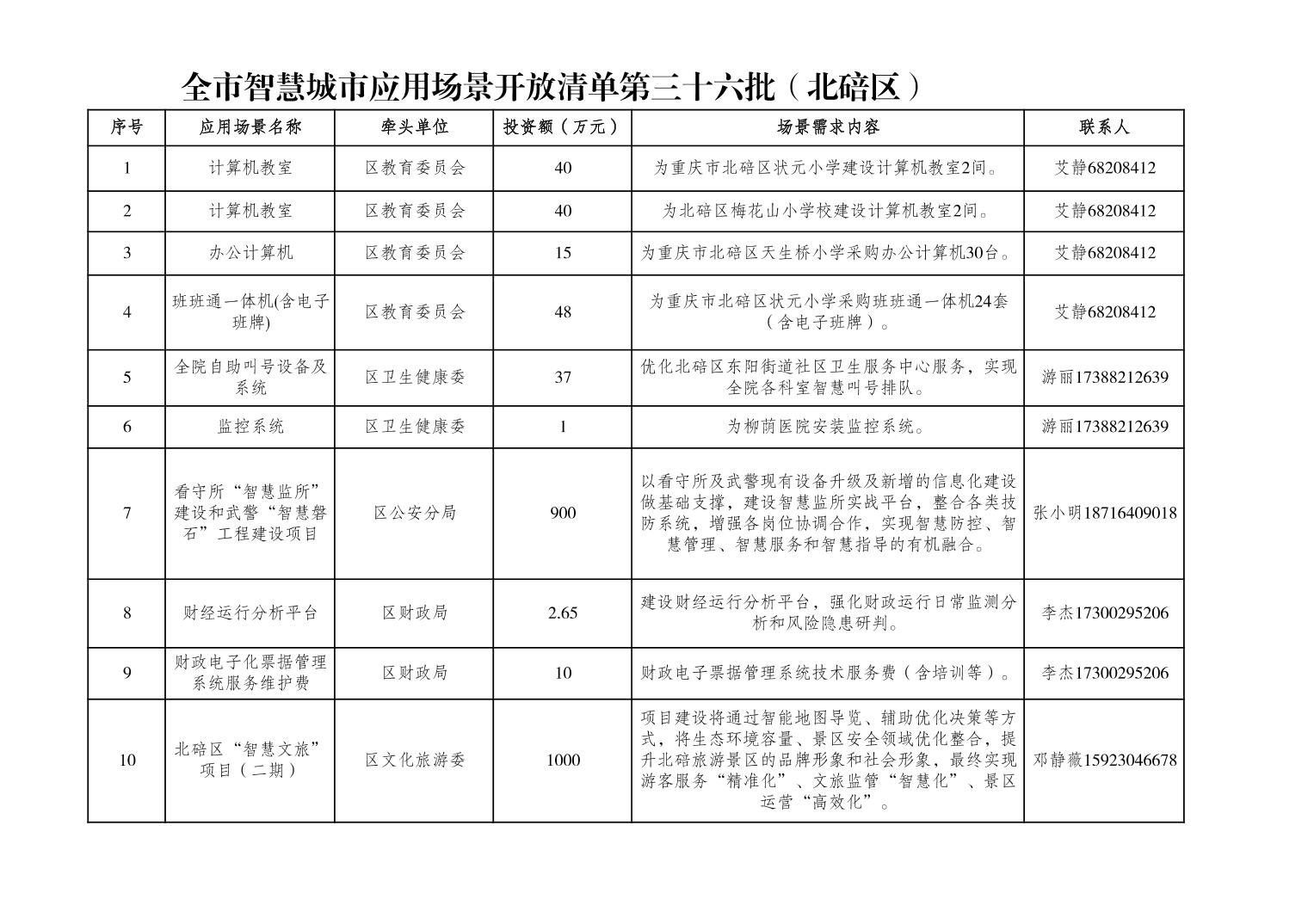 全市智慧城市应用场景开放清单第三十六批(北碚区)