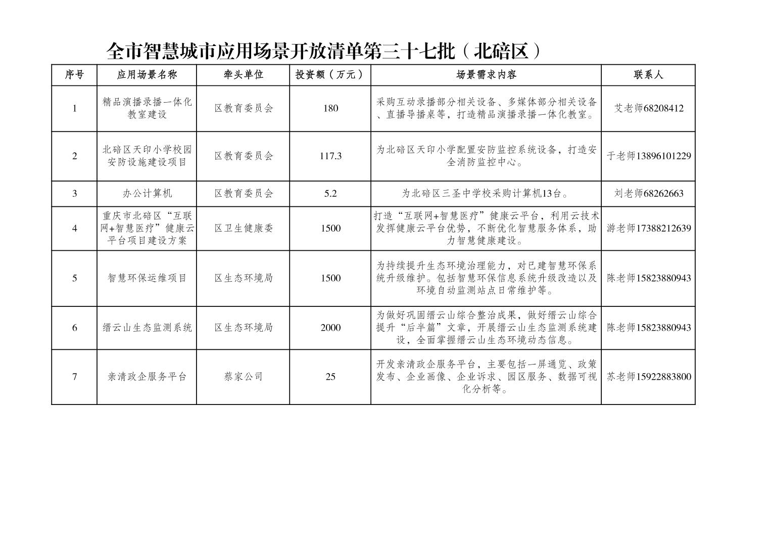 全市智慧城市应用场景开放清单第三十七批(北碚区)