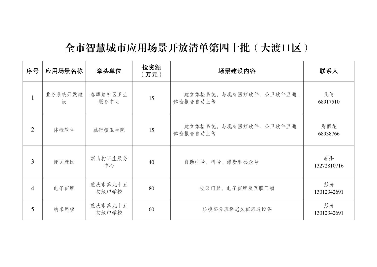 全市智慧城市应用场景开放清单第四十批(大渡口区)