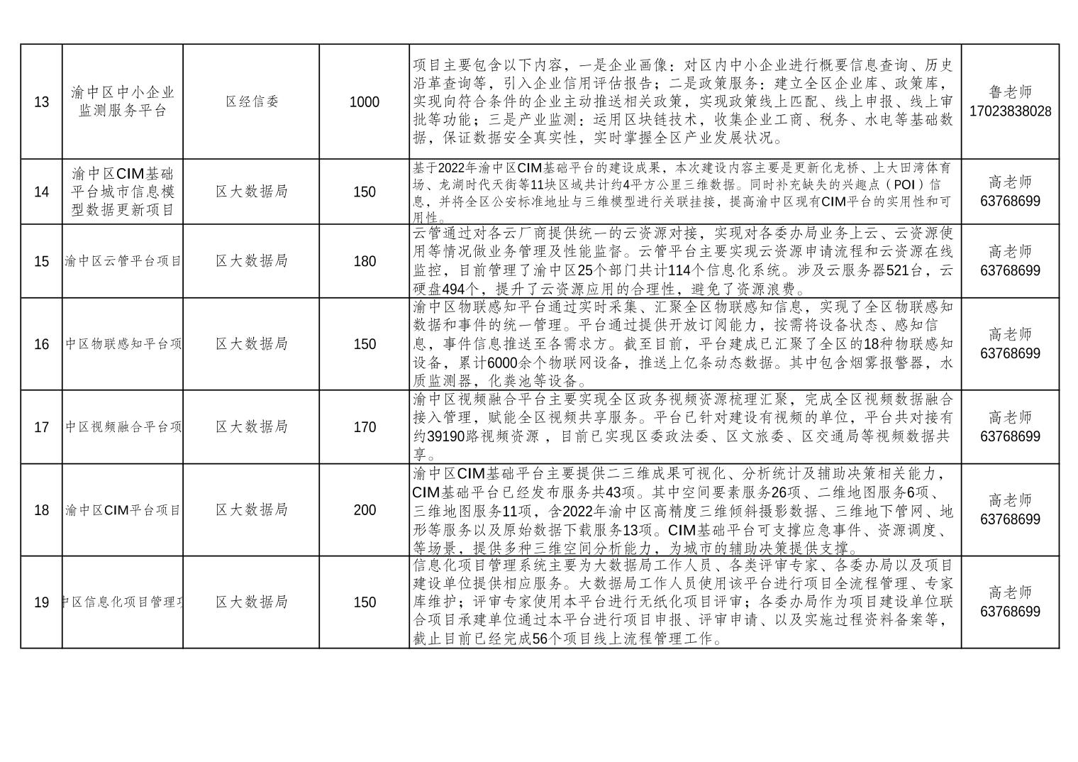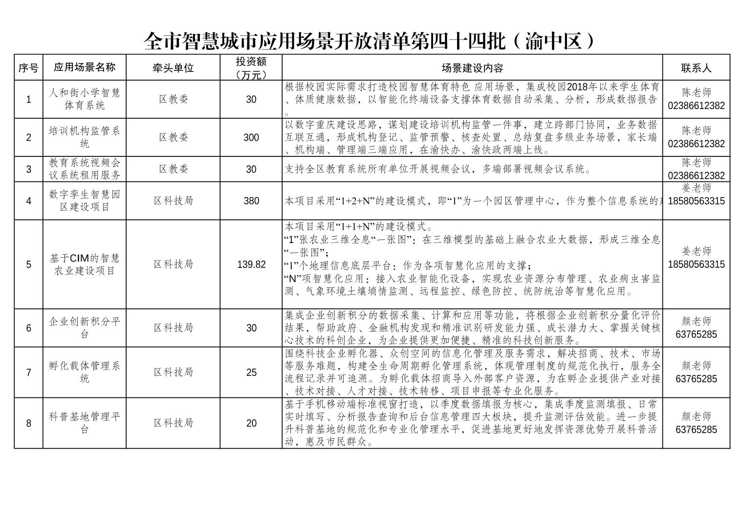 全市智慧城市应用场景开放清单第四十四批(渝中区)