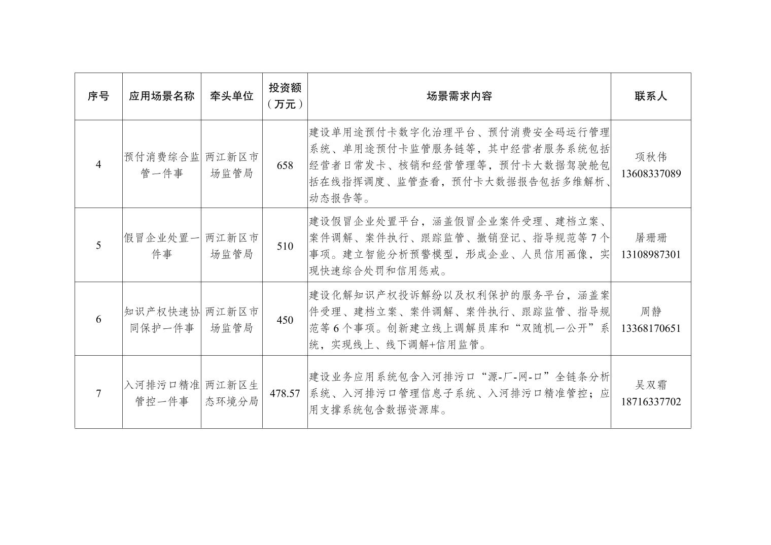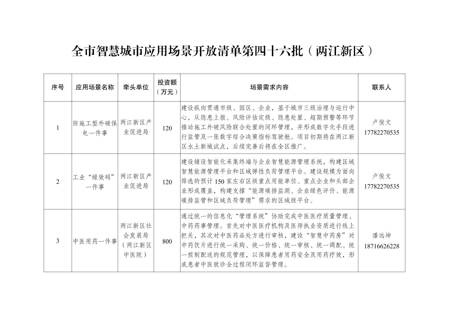 全市智慧城市应用场景开放清单第四十六批(两江新区)