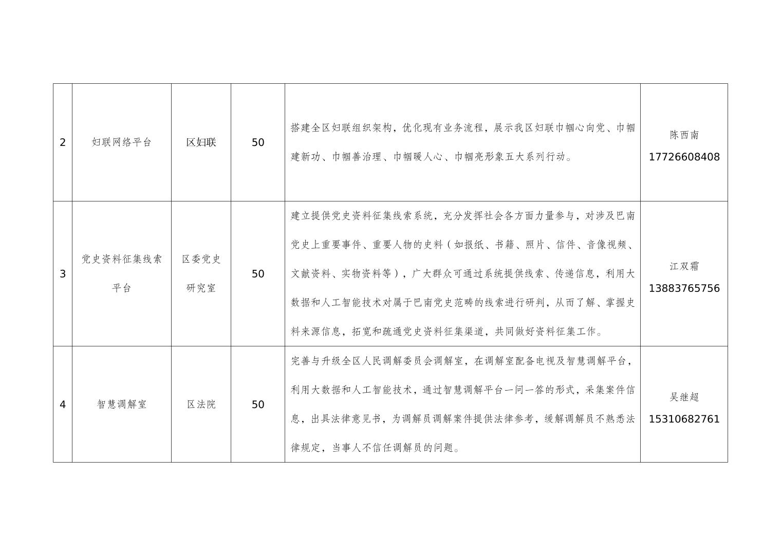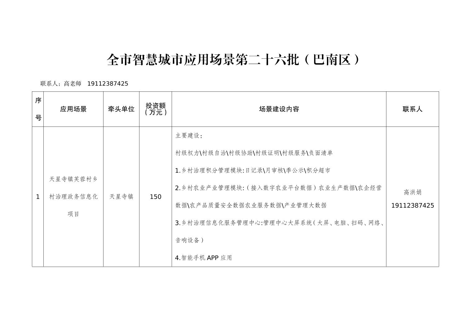 全市智慧城市应用场景开放清单第二十六批(巴南区)