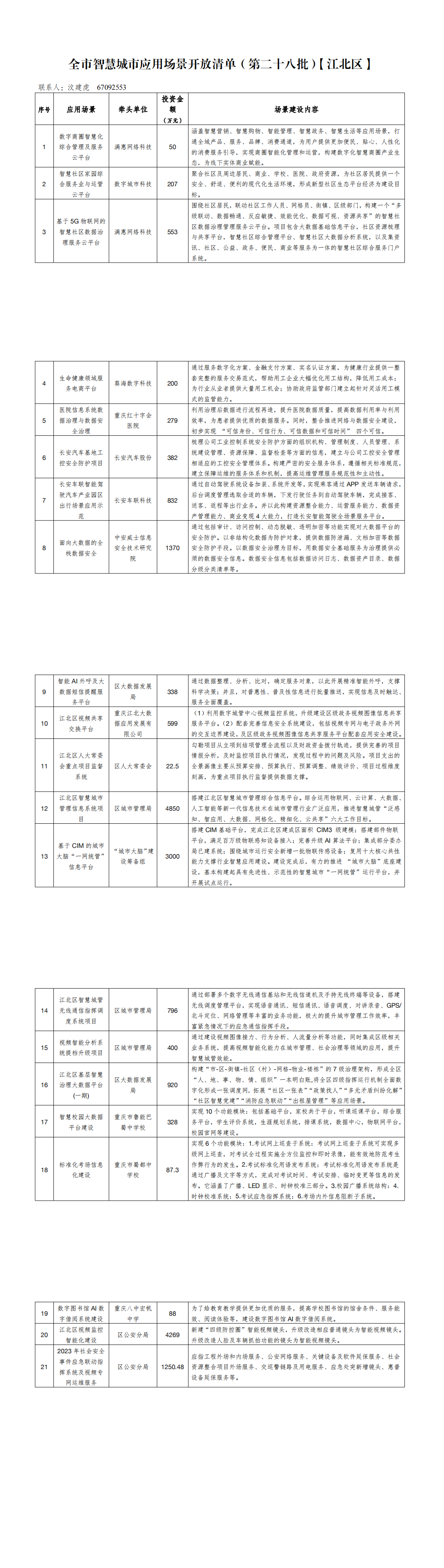 全市智慧城市应用场景开放清单(第二十八批)【江北区】