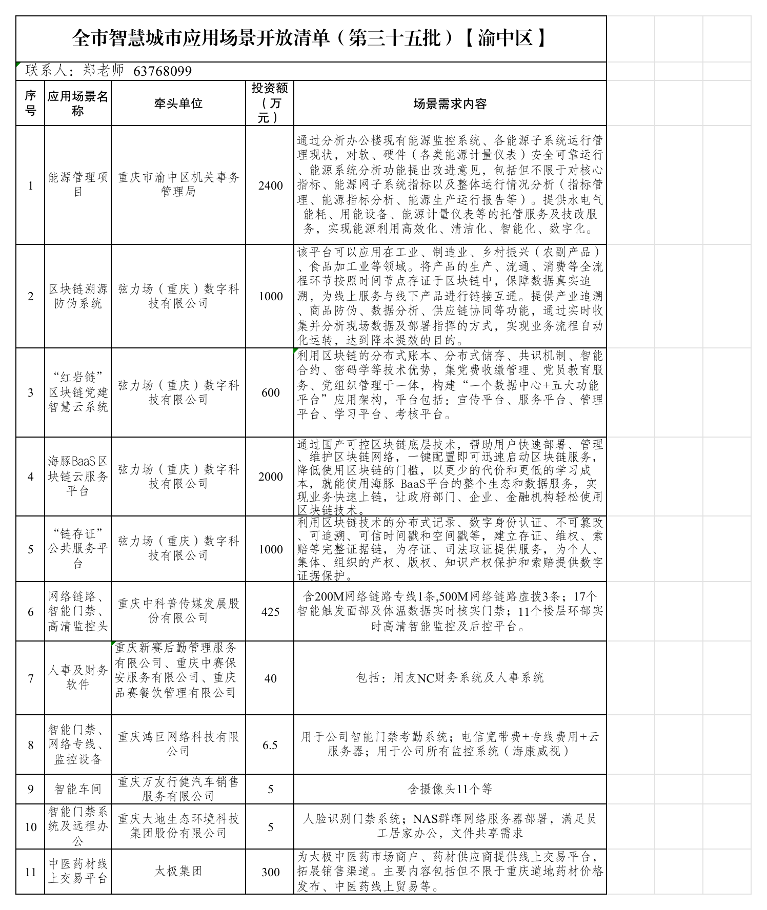 全市智慧城市应用场景开放清单(第三十五批)【渝中区】
