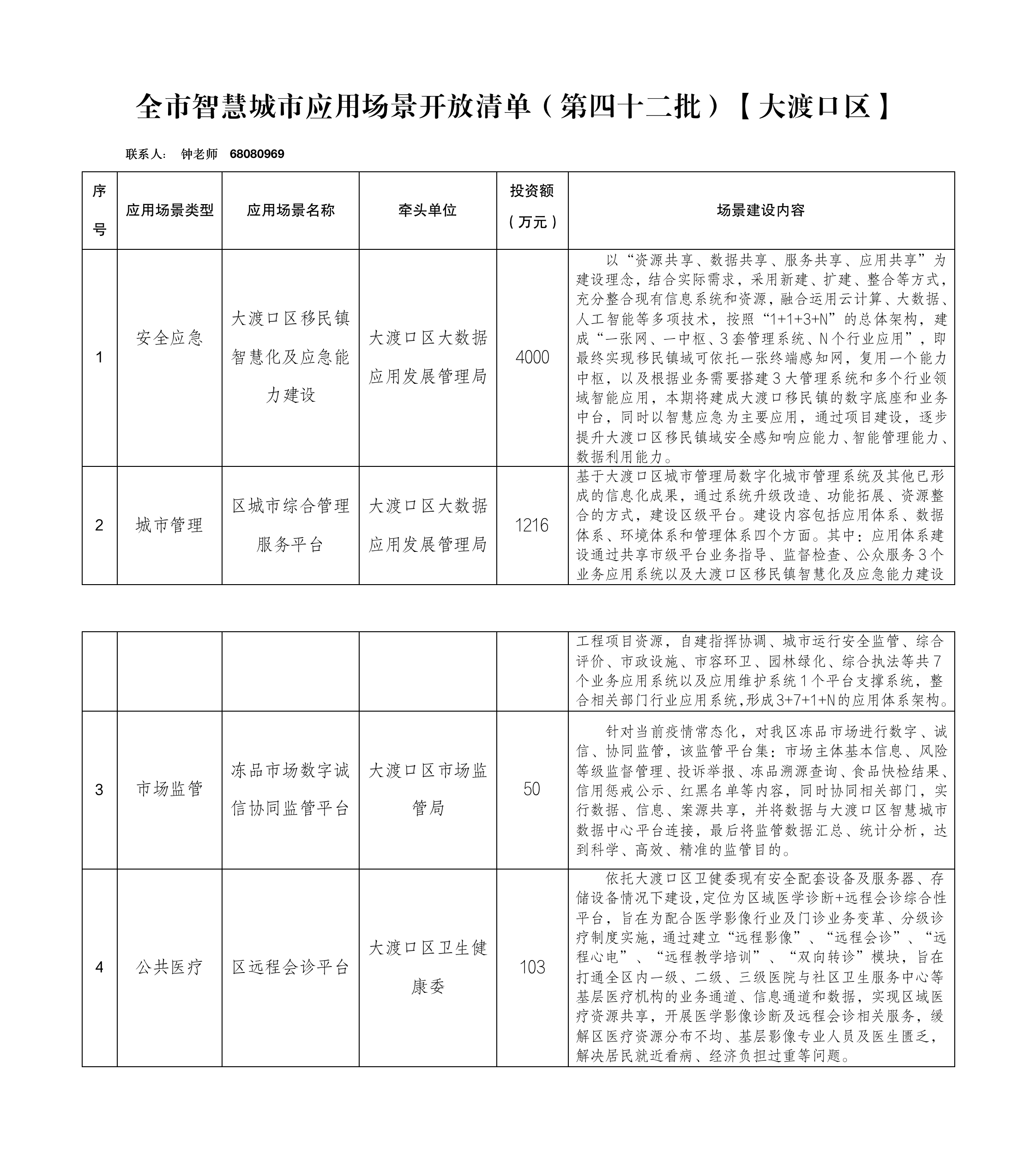 全市智慧城市应用场景开放清单(第四十二批)【大渡口区】