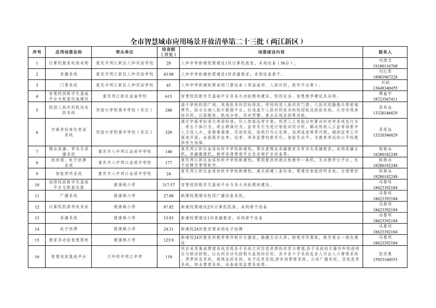 全市智慧城市应用场景开放清单第二十三批(两江新区)