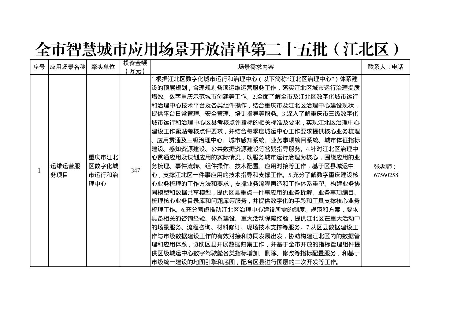 全市智慧城市应用场景开放清单第二十五批(江北区)