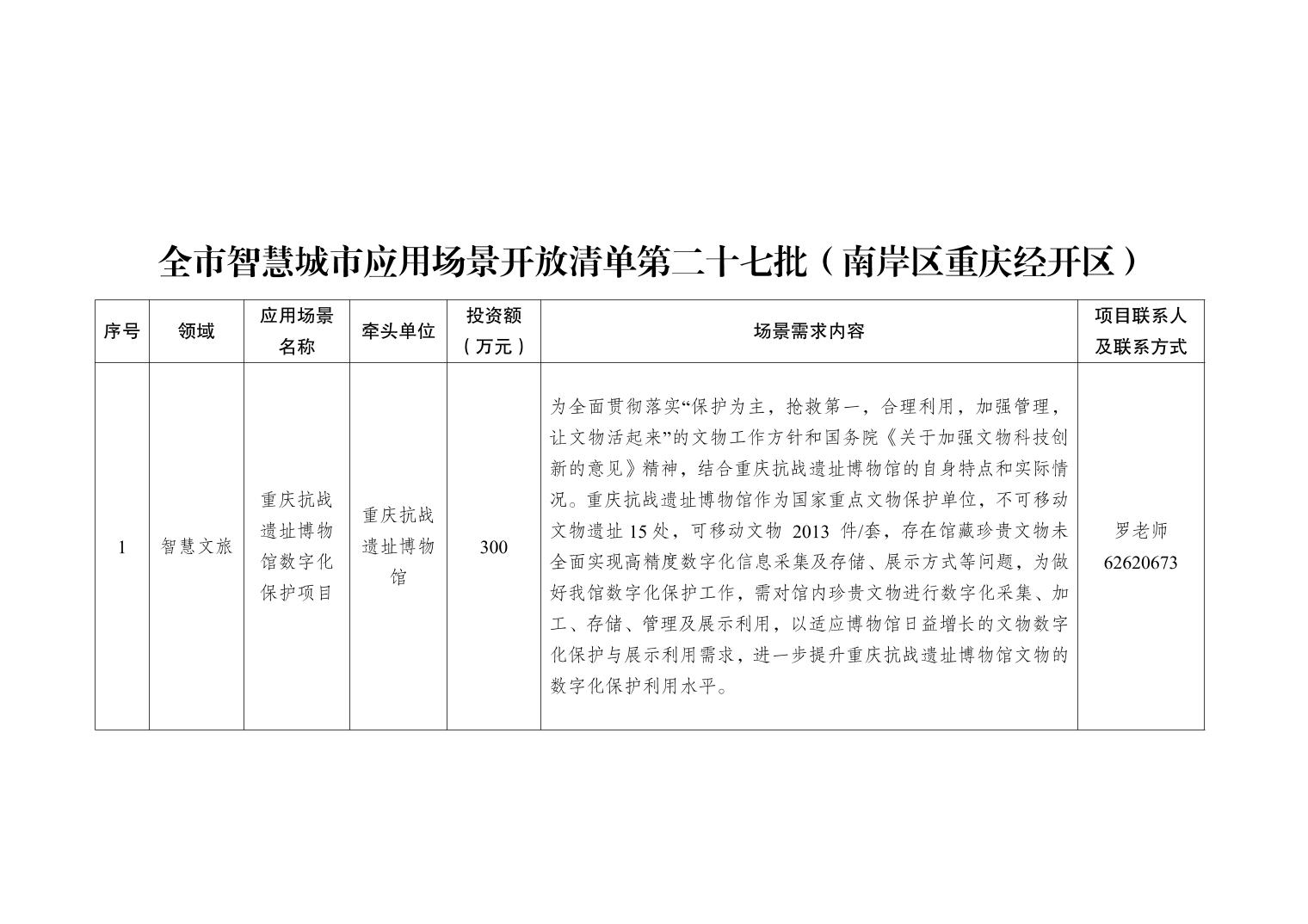 全市智慧城市应用场景开放清单第二十七批(南岸区经开区)