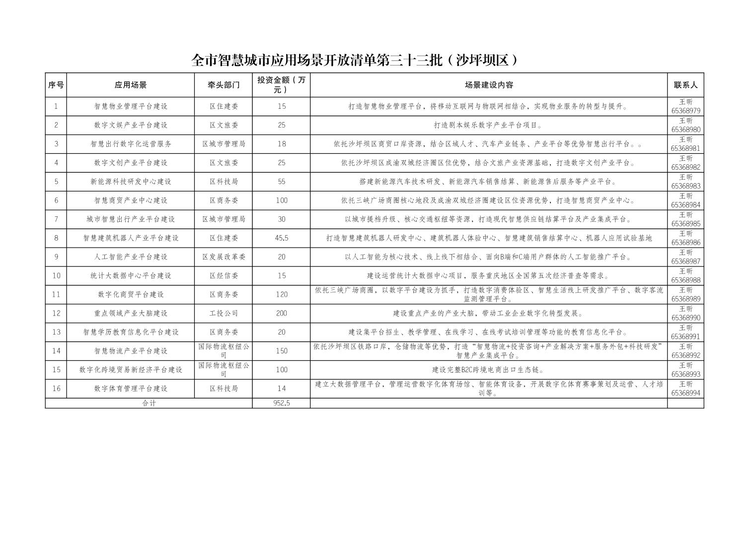 全市智慧城市应用场景开放清单第三十三批(沙坪坝区)