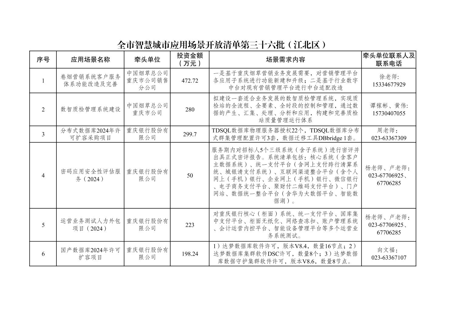 全市智慧城市应用场景开放清单第三十六批(江北区)
