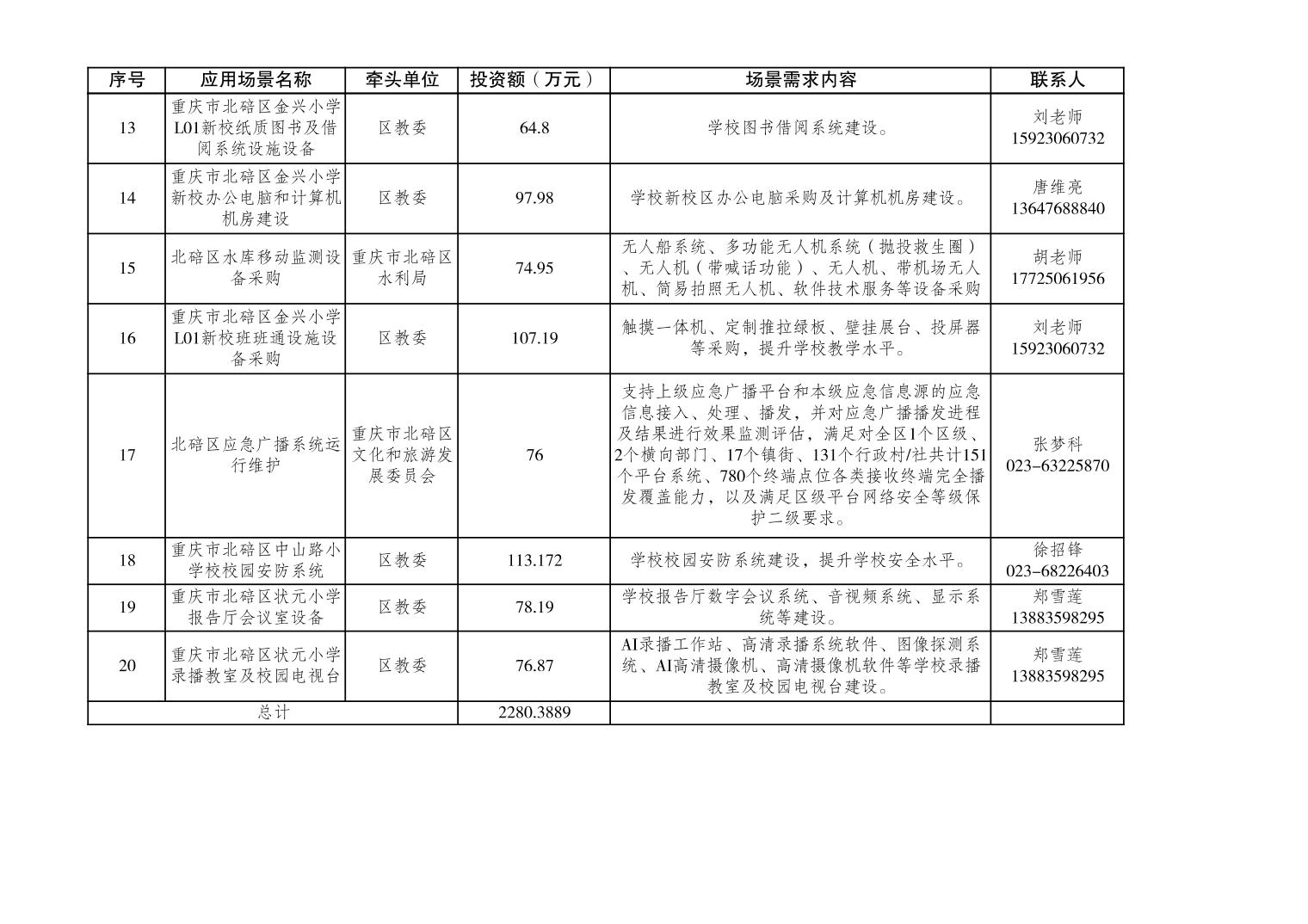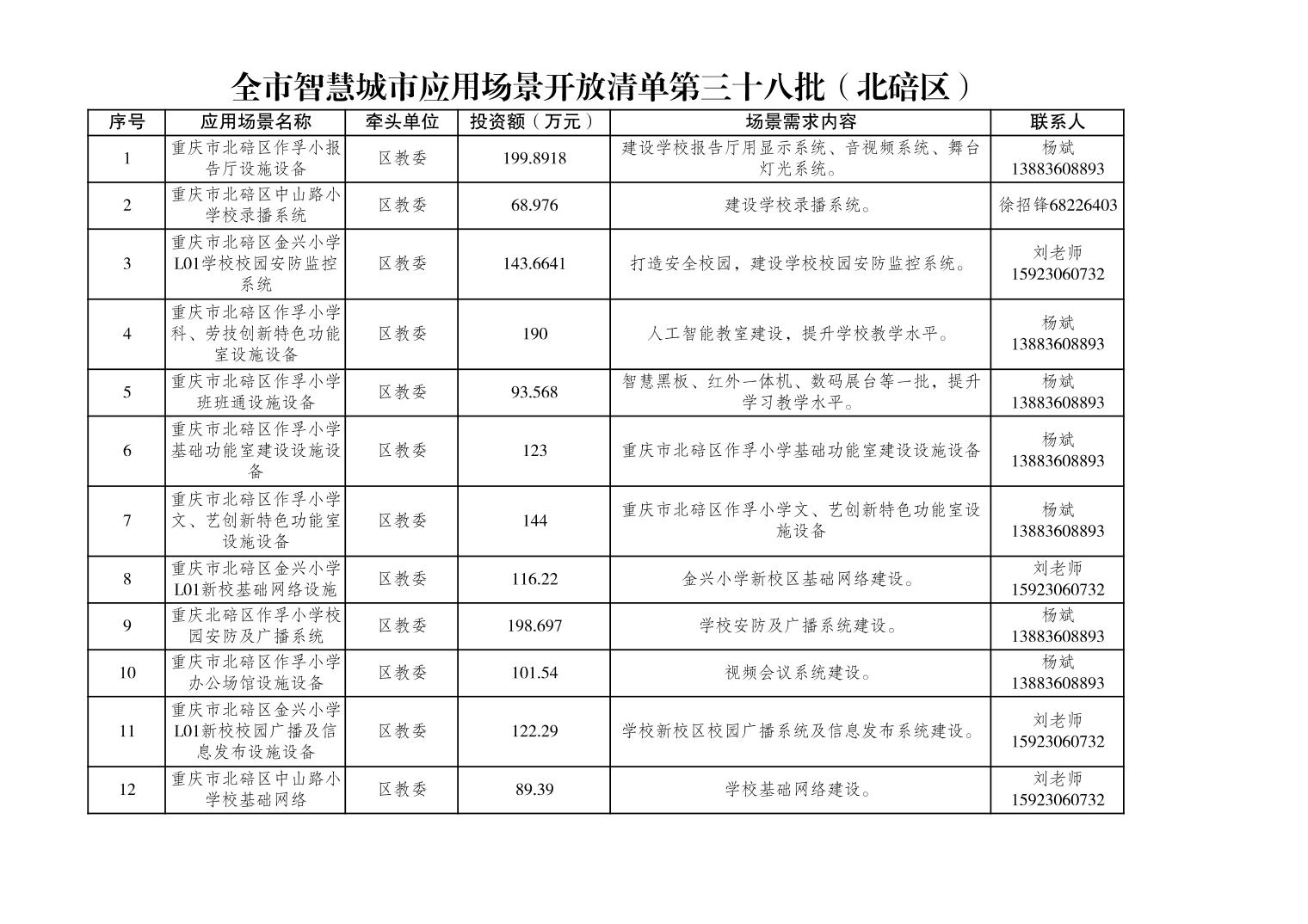 全市智慧城市应用场景开放清单第三十八批(北碚区)