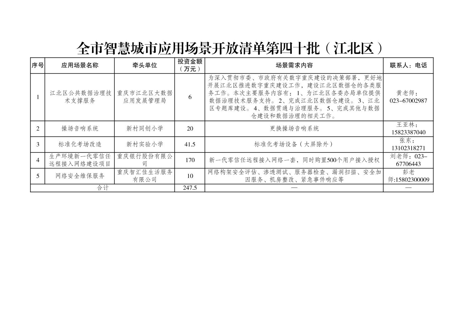 全市智慧城市应用场景开放清单第四十批(江北区)