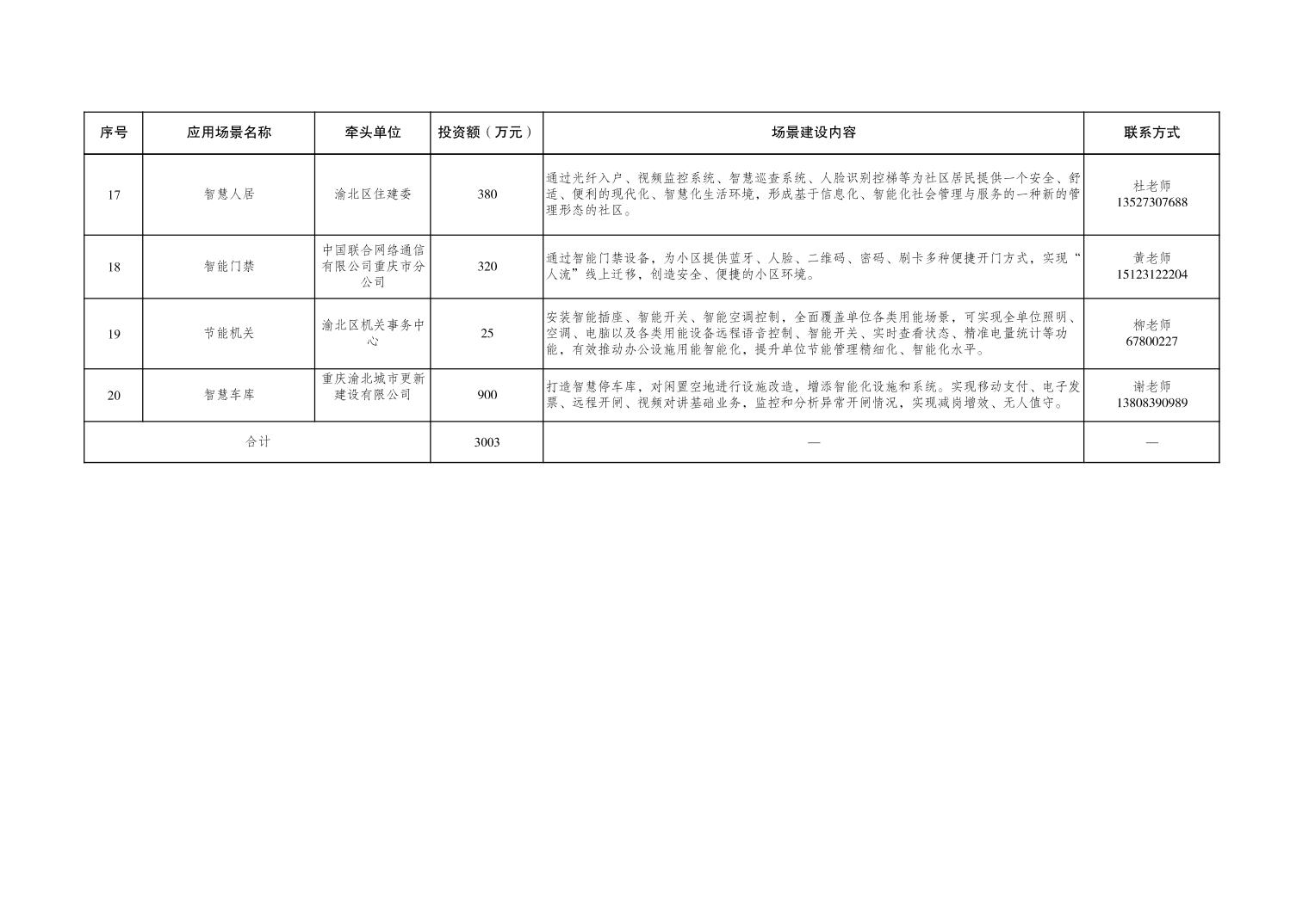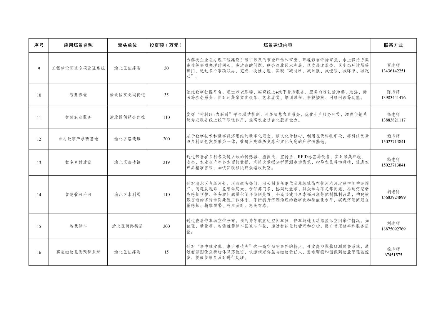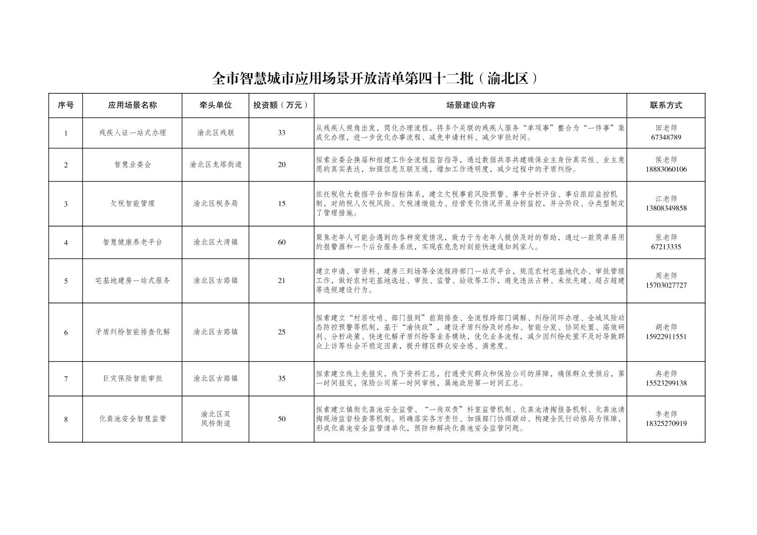 全市智慧城市应用场景开放清单第四十二批(渝北区)