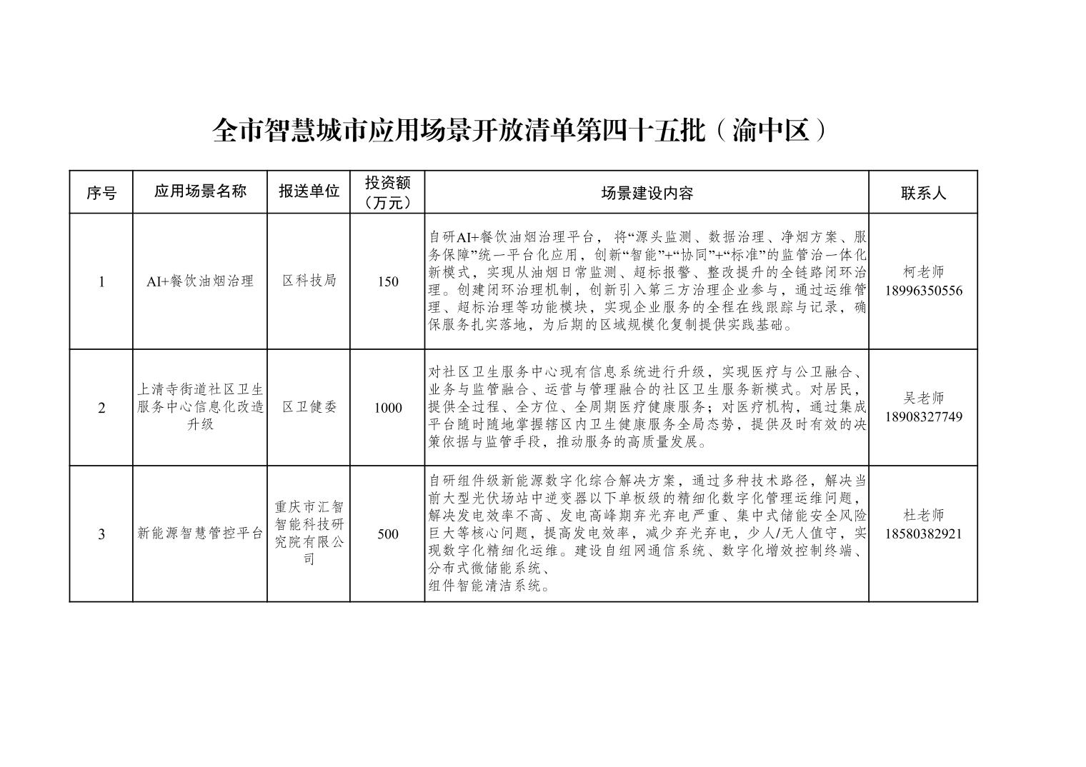 全市智慧城市应用场景开放清单第四十五批(渝中区)