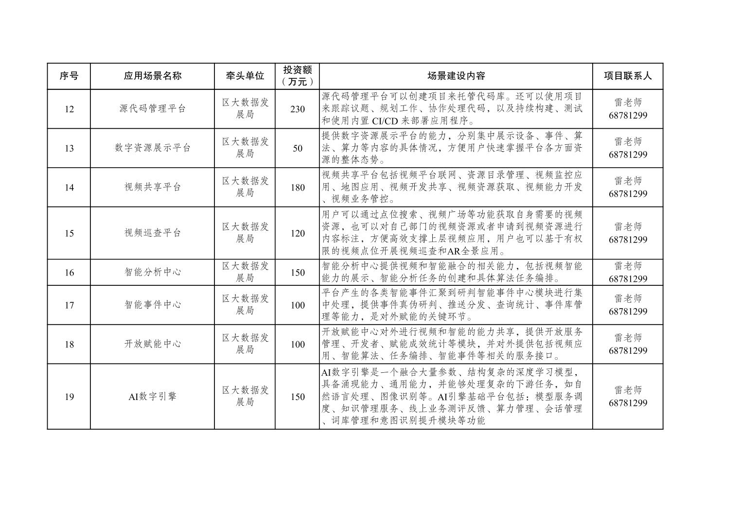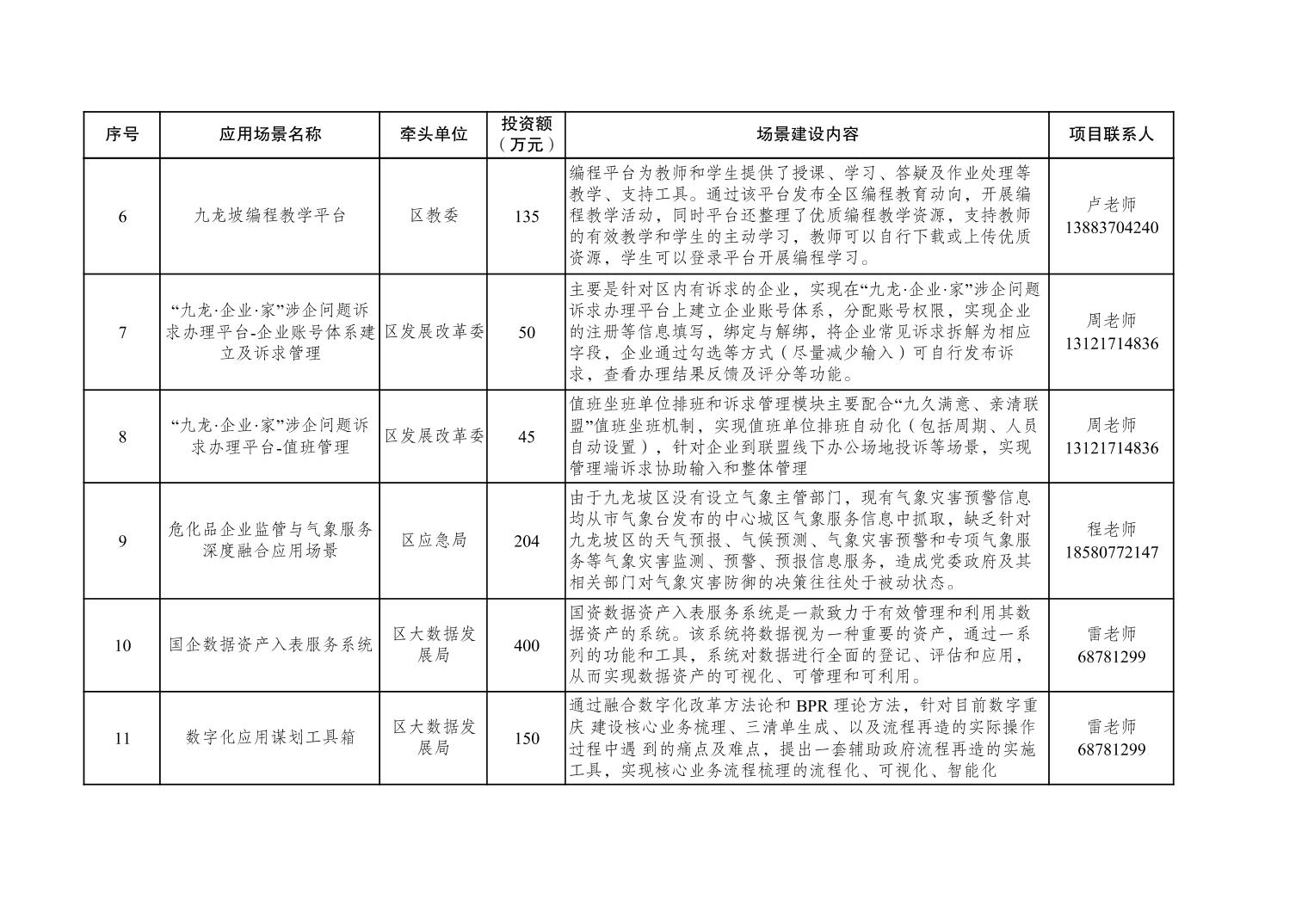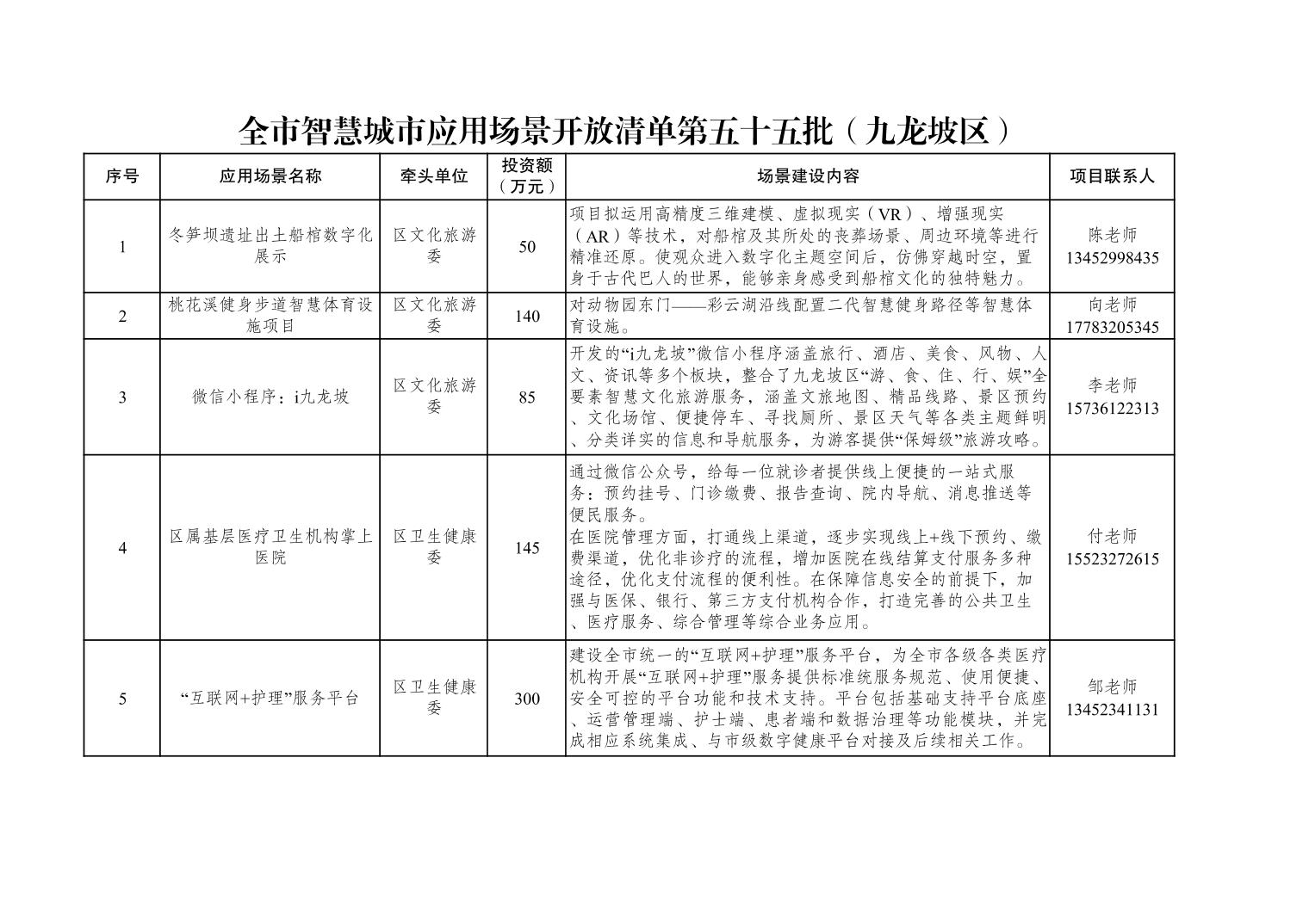 全市智慧城市应用场景开放清单第五十五批(九龙坡区)