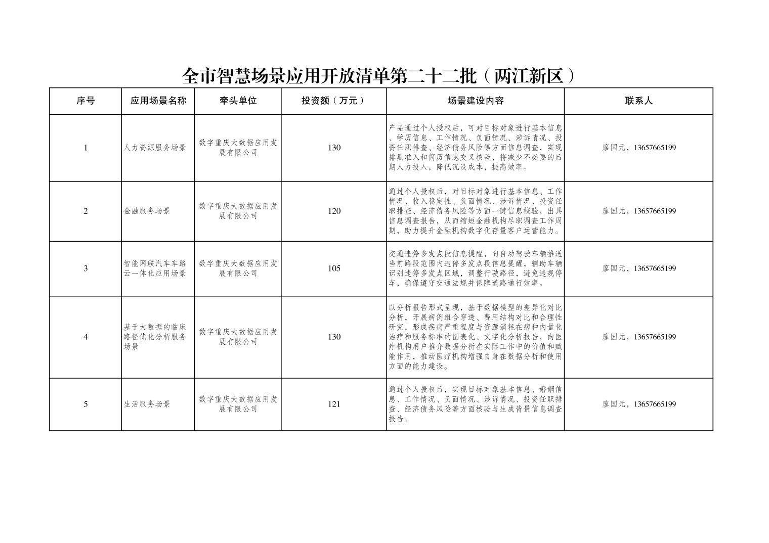 全市智慧城市应用场景开放清单第二十二批(两江新区)