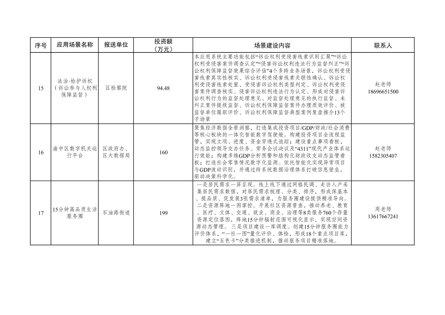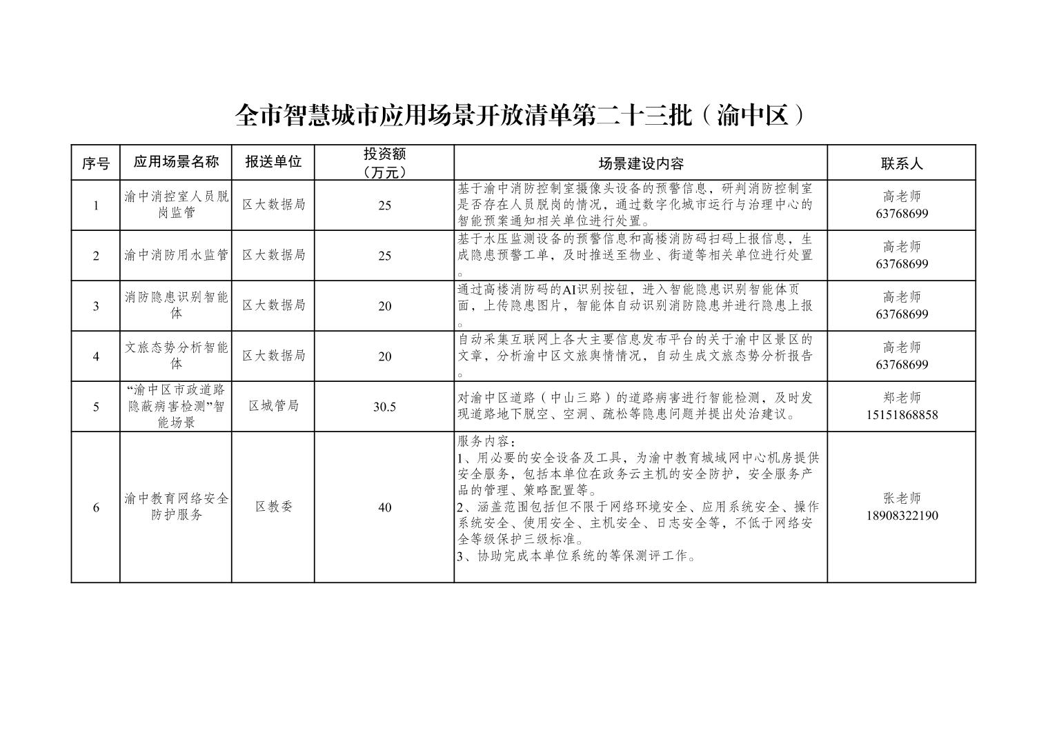 全市智慧城市应用场景开放清单第二十三批(渝中区)