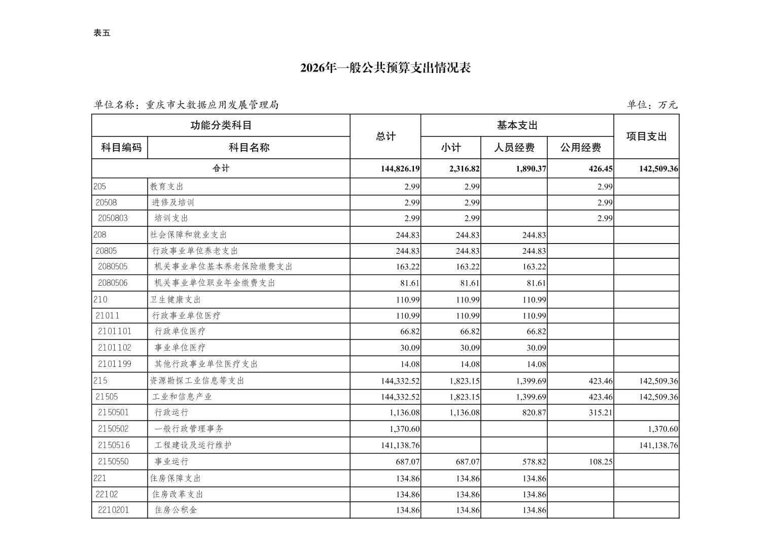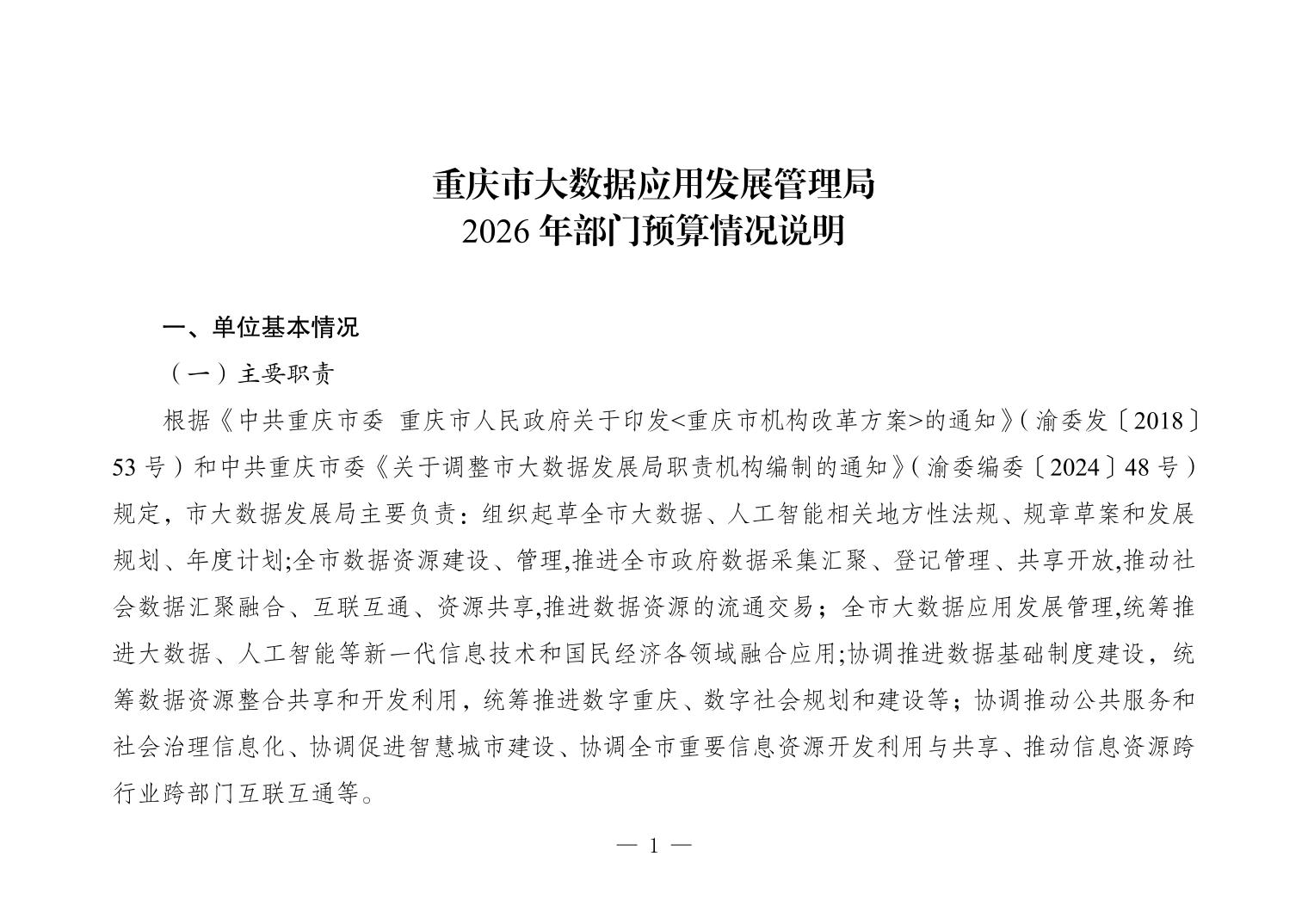 重庆市大数据应用发展管理局2026年部门预算情况说明.pdf