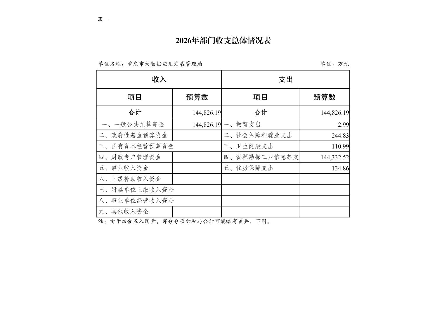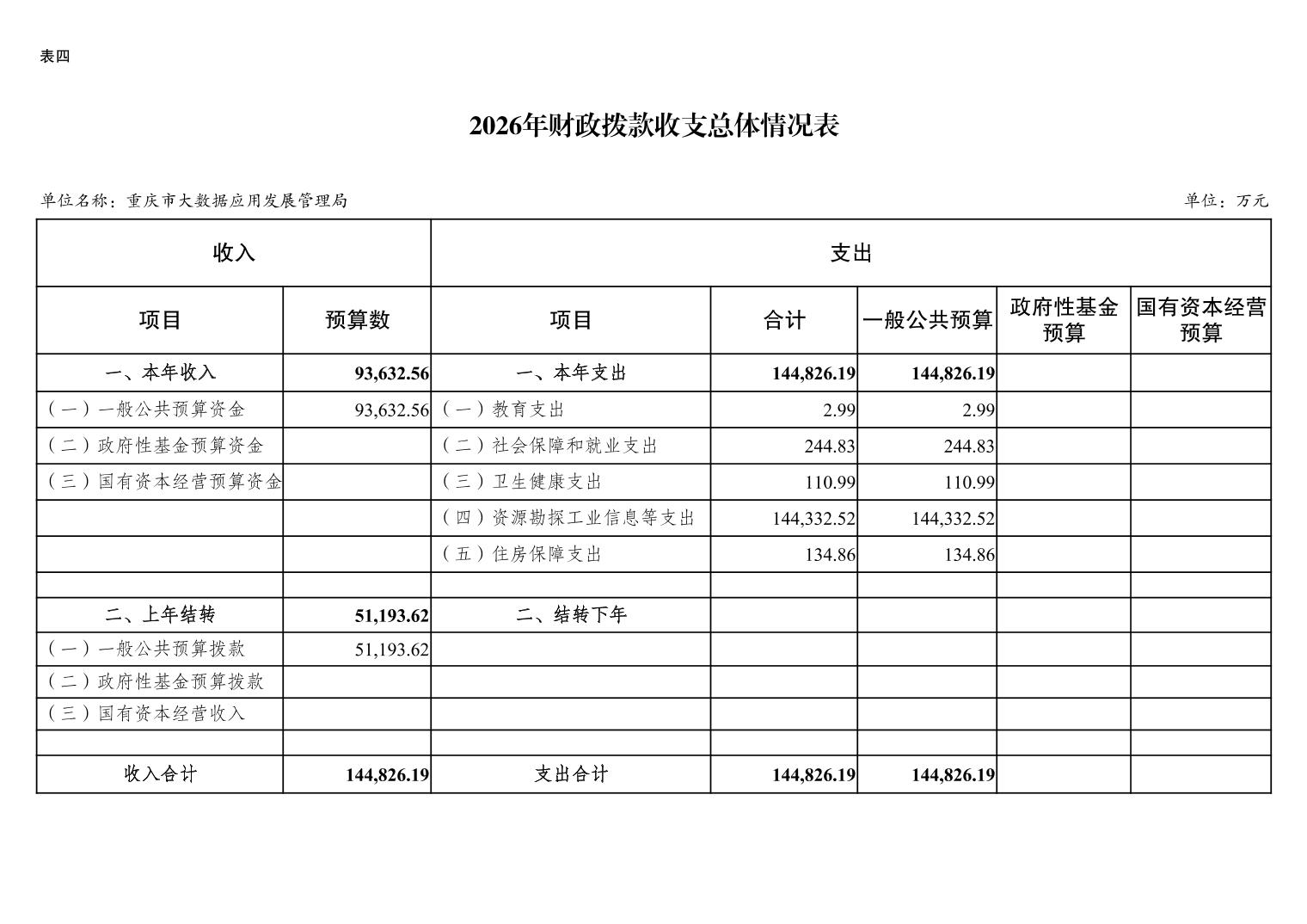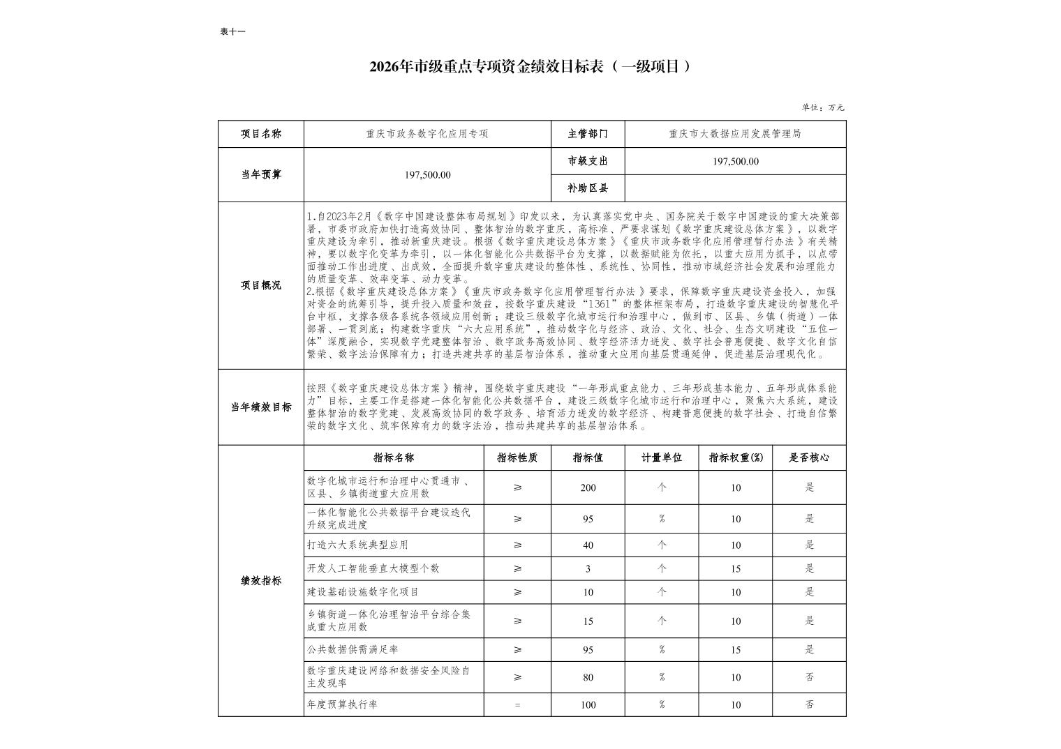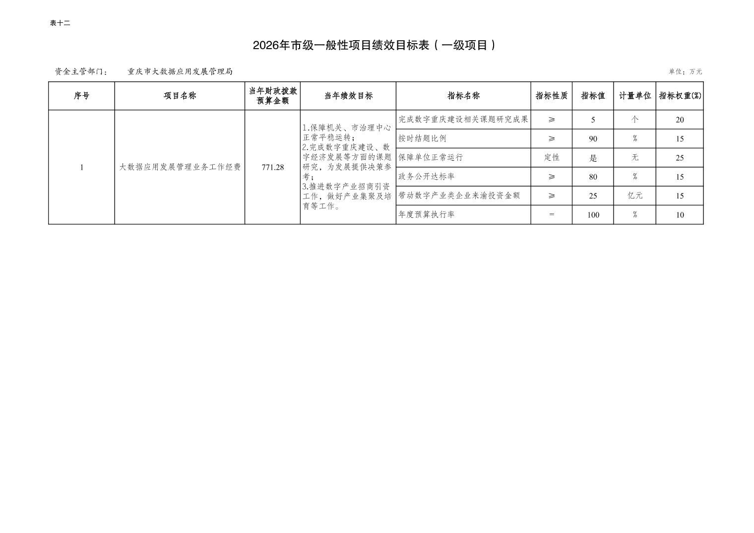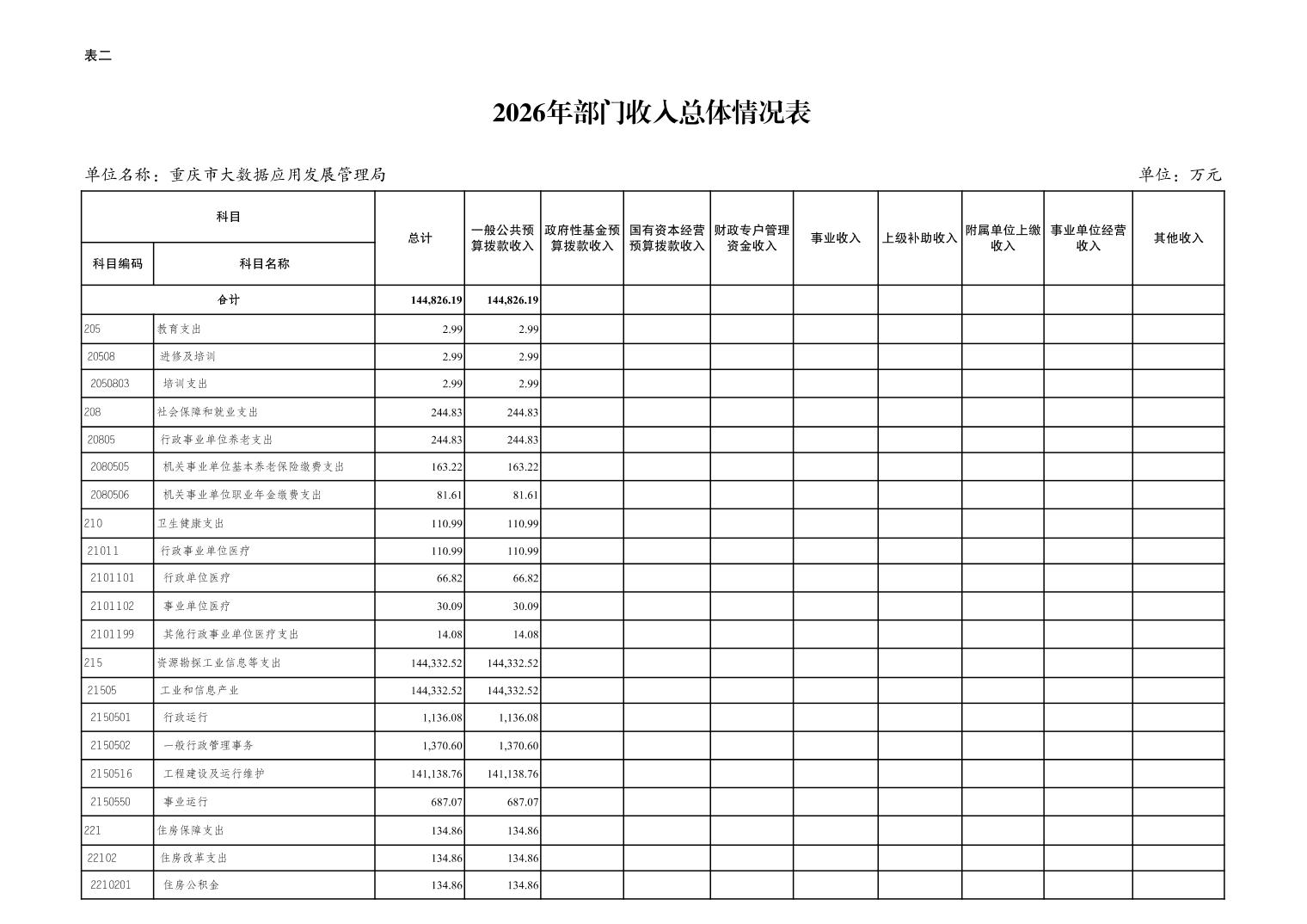 重庆市大数据应用发展管理局2026年部门预算情况说明